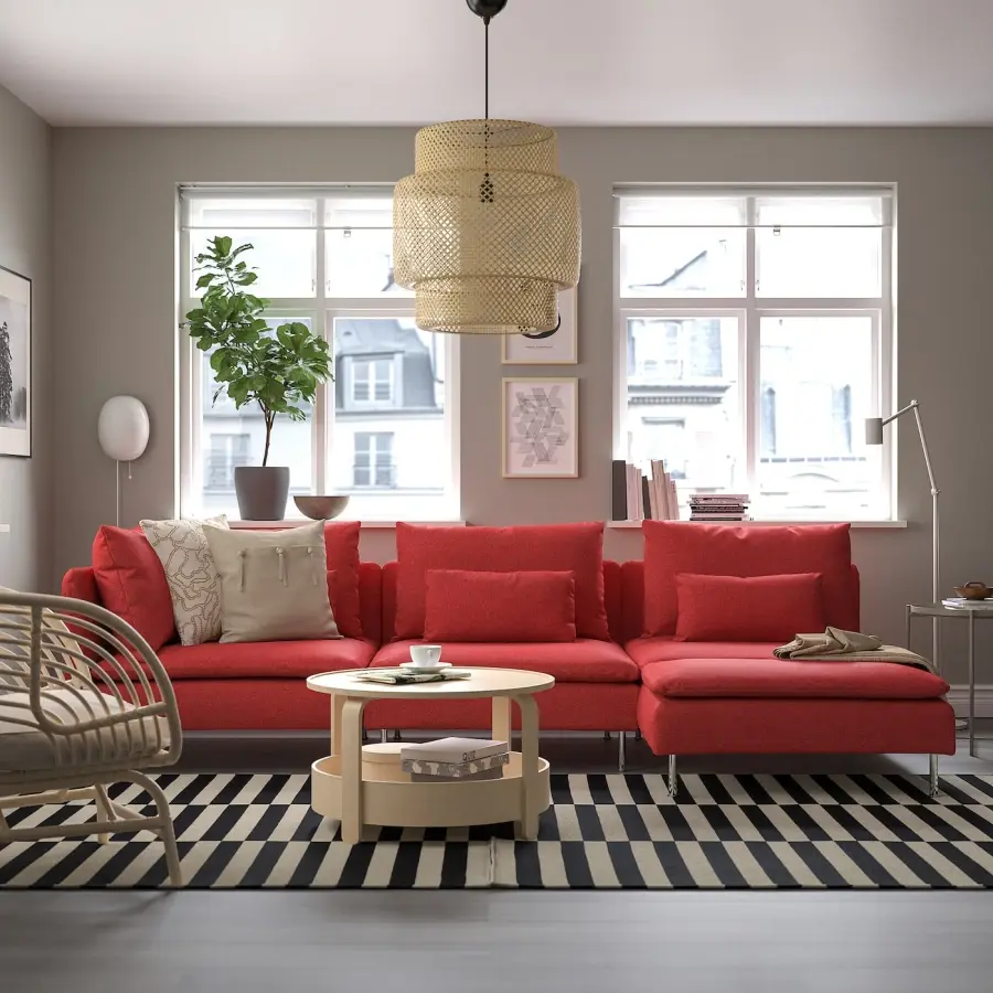 4-местный угловой диван с шезлонгом - IKEA SÖDERHAMN/SODERHAMN/СЁДЕРХАМН ИКЕА, 291/151х69х99 см, красный