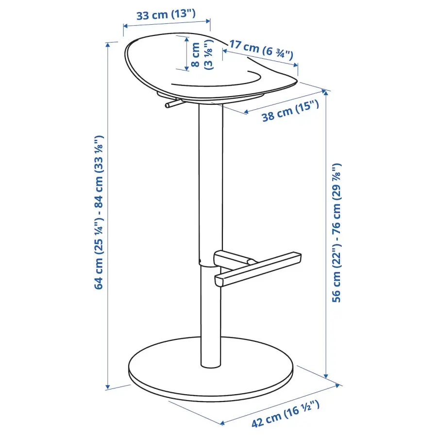 ИКЕА IKEA Вы сидите комфортно благодаря круглому сиденью. Легко регулируется по высоте одной рукой. С подставкой для ног для расслабленной сидячей позы. Специальная обработка поверхности делает сиденье устойчивым к царапинам. Оригинальная икея/ikea
