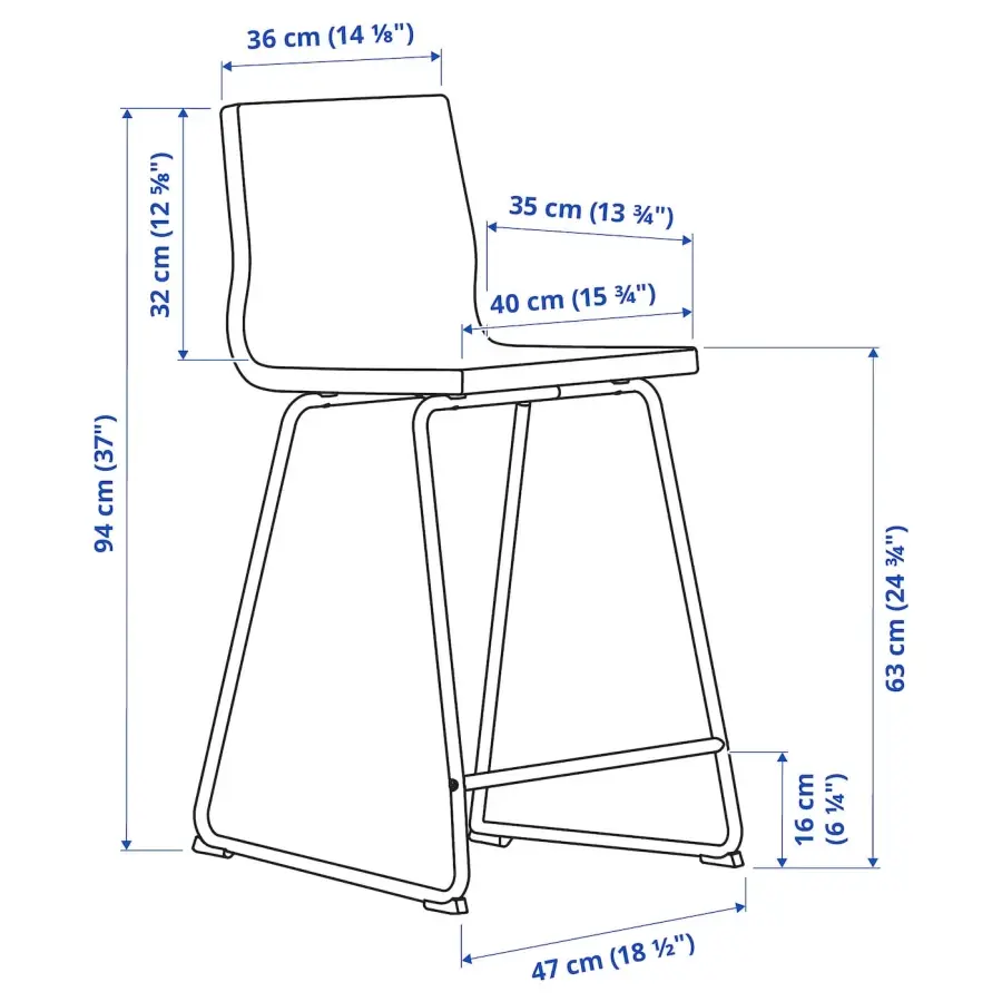 ИКЕА IKEA Удобная подставка для ног обеспечивает расслабленную сидячую позу. Мягкое сиденье и удобный угол наклона спинки делают барный стул идеальным для продолжительных ужинов. Металлический каркас обеспечивает удобную упругость. Чехол легко поддерживать в чистоте, так как он съемный и его можно стирать в машине. Оригинальная икея/ikea