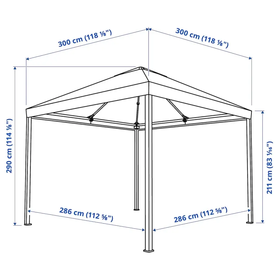 ИКЕА IKEA Ткань обеспечивает превосходную защиту от солнечных УФ-лучей, так как имеет рейтинг UPF (фактор защиты от ультрафиолета) 50+, что означает, что она блокирует 98% ультрафиолетового излучения. Прочная ткань навеса устойчива к выцветанию, что позволяет дольше сохранять свежий цвет. Во время небольшого проливного дождя вы можете остаться и расслабиться под беседкой, поскольку навес отталкивает воду. Вентиляционное отверстие снижает давление ветра и позволяет циркулировать теплу. Легко содержать в чистоте и свежести, так как ткань можно снять и постирать в машине. Оригинальная икея/ikea