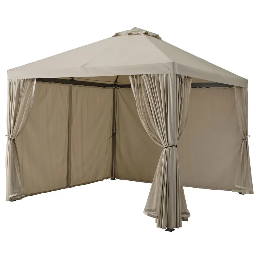 Беседка со шторами и сеткой - IKEA HIMMELSÖ/HIMMELSO/ХИММЕЛЬСЁ ИКЕА, 300х300х290 см, бежевый/черный