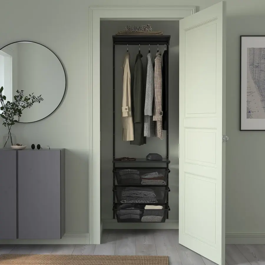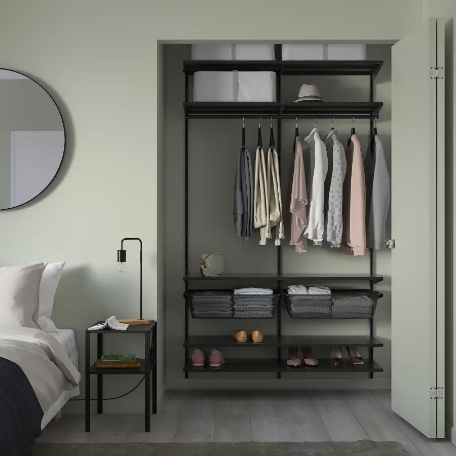ИКЕА IKEA В ограниченном пространстве вы можете разместить больше, чем думаете. Настенная система хранения BOAXEL проста в установке и позаботится о всей вашей одежде и обуви в спальне и небольших шкафах. Оригинальная икея/ikea