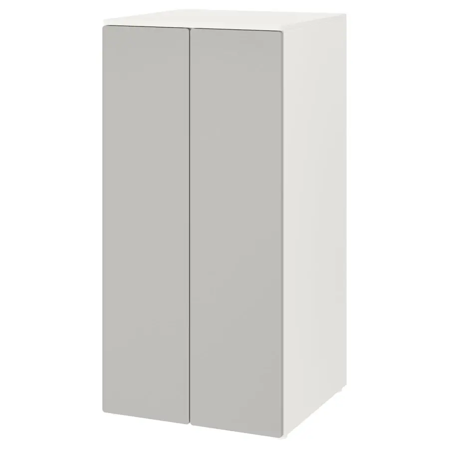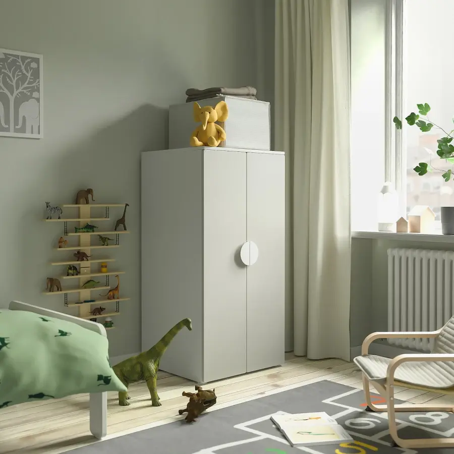 Практичный и беспыльный способ хранения мелких и крупных вещей – или скрыть хаос, который часто возникает, когда речь идет о детских вещах. Идеальная высота для маленьких детей. Они могут легко добраться и найти вещи самостоятельно. Двери оснащены петлями с плавным закрыванием, которые позволяют им закрываться мягко и бесшумно даже после ожесточенного спора. Устойчиво стоит даже на неровном полу, поскольку в комплект входят регулируемые ножки. Чтобы сэкономить наши природные ресурсы и использовать как можно больше древесины, мы использовали остатки лесопилки и древесные отходы для изготовления ДСП для СМОСТАДА.