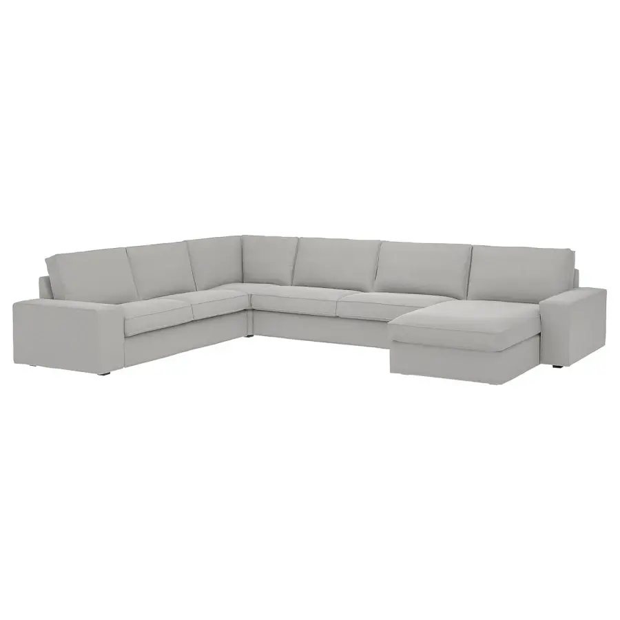 Диван угловой 6-местный с оттоманкой - IKEA KIVIK/КИВИК ИКЕА, светло-серый