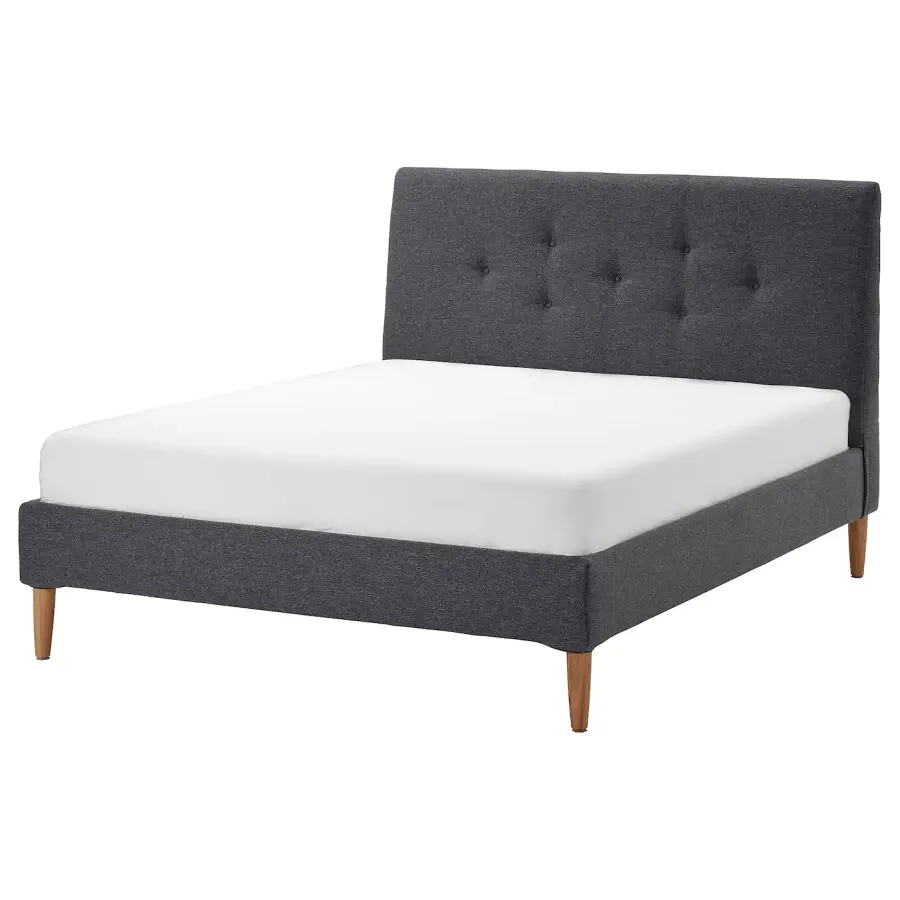 Каркас кровати с мягкой обивкой ИДАНЭС имеет толстое наклонное изголовье, которое обеспечивает удобную поддержку спины - идеально подходит для ленивого утра и долгих вечеров, когда вы читаете газету или захватывающую книгу в постели. Классическая отделка пуговицами сделает изголовье привлекательным в любой спальне. Мягкая на ощупь обивка делает сон еще более уютным. Ножки из массива дерева прочные и крепкие и дополняют классический дизайн. Создайте гармоничную спальню, объединив этот каркас кровати с другой мебелью серии ИДАНЭС. Легко собрать благодаря упрощенному процессу сборки с меньшим количеством шагов и приспособлений. Ткань GUNNARED темно-серого цвета прочна и придает спальне неподвластный времени стиль. Под кроватью достаточно места для ящиков для хранения — идеально подходит для хранения дополнительных одеял и подушек. Вы можете легко пропылесосить под каркасом кровати, чтобы сохранить чистоту и отсутствие пыли. Регулируемые боковины кровати позволяют использовать матрасы разной толщины.