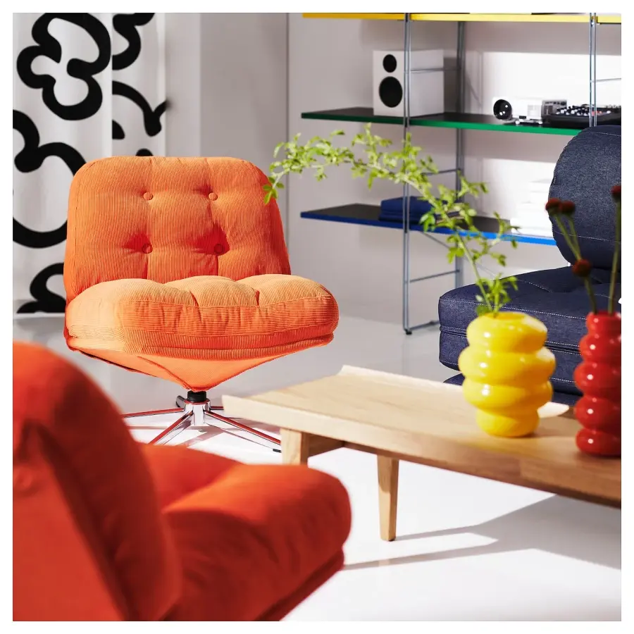 ИКЕА IKEA Вращающееся кресло MILA было представлено в нашем каталоге 1967 года как «средство борьбы со стрессом». Разработанный Джиллис Лундгрен, предмет мебели имел большой успех и теперь вернулся под новым названием DYVLINGE как часть коллекции Nytillverkad. Оригинальная икея/ikea