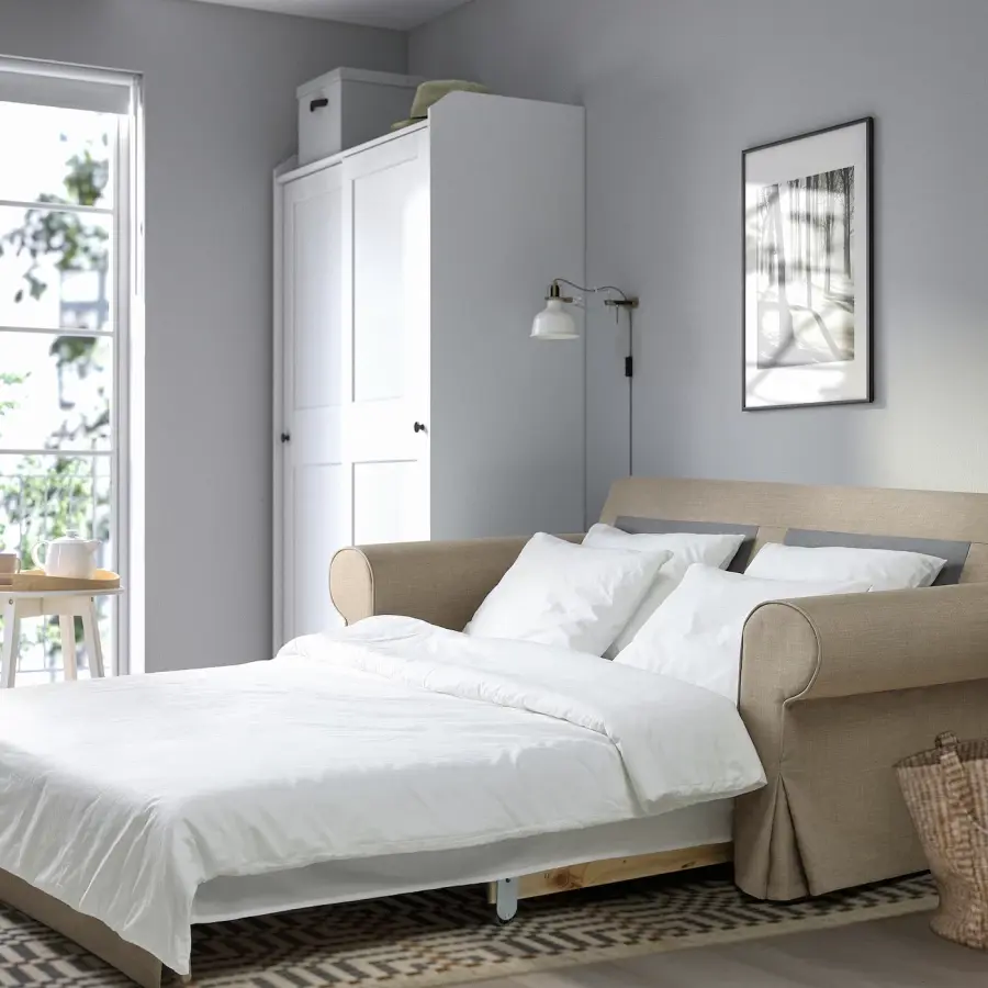 ИКЕА IKEA Классический внешний вид в сочетании с большим комфортом. В разложенном виде она будет служить дополнительным спальным местом для гостей, но также хорошо послужит удобной кроватью для повседневного сна. А когда наступит утро, вы легко сможете хранить постельное белье в контейнере. Оригинальная икея/ikea