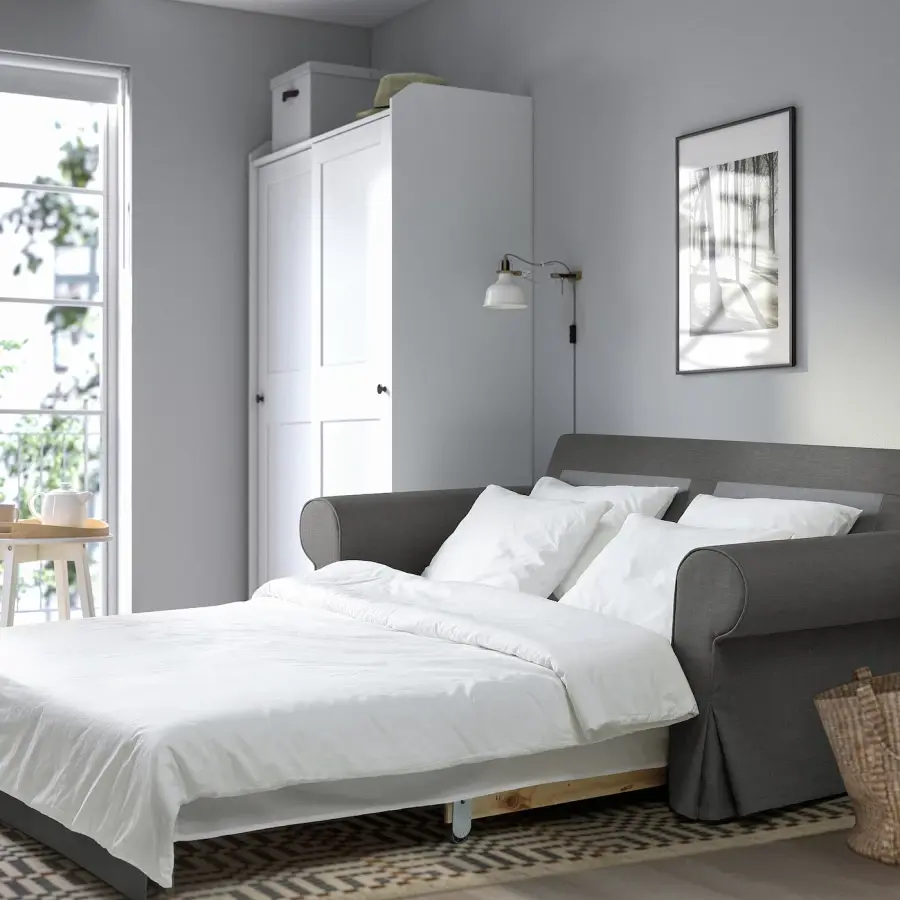 ИКЕА IKEA Классический внешний вид в сочетании с большим комфортом. В разложенном виде она будет служить дополнительным спальным местом для гостей, но также хорошо послужит удобной кроватью для повседневного сна. А когда наступит утро, вы легко сможете хранить постельное белье в контейнере. Оригинальная икея/ikea