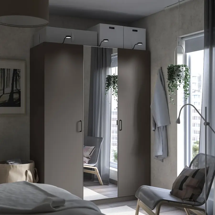 ИКЕА IKEA 10 лет гарантии. Прочтите об условиях в гарантийной брошюре. Вы можете легко адаптировать эту готовую комбинацию ПАКС/КОМПЛИМЕНТ в соответствии с вашими потребностями и вкусом с помощью инструмента планирования ПАКС. Регулируемые ножки позволяют компенсировать любые неровности пола. Петли со встроенными демпферами захватывают дверь и закрывают ее медленно, бесшумно и мягко. После выбора источника света планировщик определит, какие аксессуары вам нужны для завершения решения. Знаете ли вы, как легко перемещать внутренние органайзеры по вкусу или менять их позже? С небольшими изменениями вы можете изменить решение для хранения в соответствии с вашей одеждой, а не наоборот. Комната сразу же кажется больше, светлее и просторнее, выбрав зеркальные двери. Отличный способ преобразить узкую прихожую или крошечную спальню. Оригинальная икея/ikea