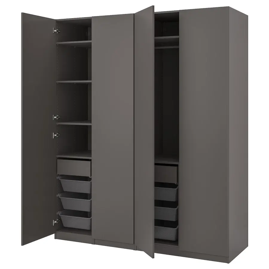 ИКЕА IKEA 10 лет гарантии. Ознакомьтесь с условиями в гарантийной брошюре. Вы можете легко адаптировать эту готовую комбинацию ПАКС/КОМПЛИМЕНТ в соответствии с вашими потребностями и вкусом с помощью инструмента планирования ПАКС. Регулируемые ножки позволяют компенсировать любые неровности пола. Раздвижные двери оставляют больше места для мебели, потому что они не занимают места для открывания. Устройства плавного открывания/закрывания захватывают движущиеся двери, чтобы они открывались и закрывались медленно, бесшумно и мягко. С PAX Planner вы можете легко дополнить свою комбинацию встроенным освещением. После выбора источника света планировщик подберет аксессуары, необходимые для завершения решения. Благодаря умному разделителю на вешалке есть место как для длинной, так и для короткой одежды, не теряя места для хранения под короткой одеждой. Сетчатая корзина обеспечивает циркуляцию воздуха и идеально подходит для хранения сложенной одежды, носков или аксессуаров. Раздвижные двери не требуют ручек или ручек. Это создает вневременное выражение, которое легко комбинировать с разными стилями. Оригинальная икея/ikea