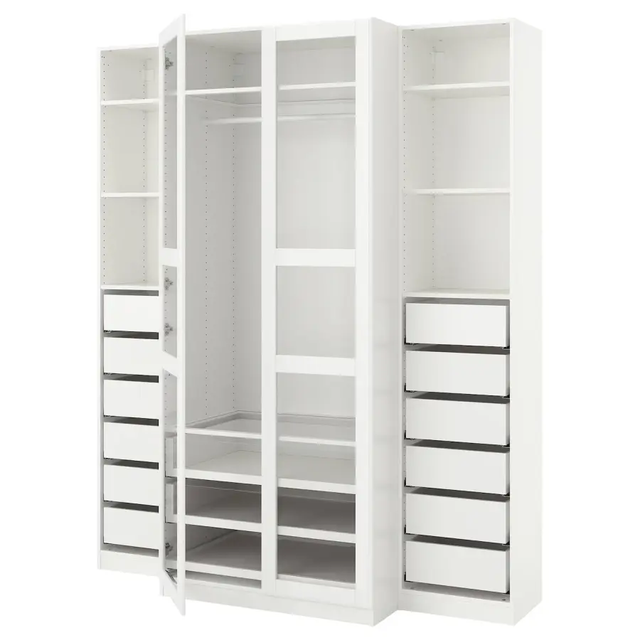 ИКЕА IKEA 10 лет гарантии. Прочтите об условиях в гарантийной брошюре. Вы можете легко адаптировать эту готовую комбинацию ПАКС/КОМПЛИМЕНТ в соответствии с вашими потребностями и вкусом с помощью инструмента планирования ПАКС. Регулируемые ножки позволяют компенсировать любые неровности пола. Петли со встроенными демпферами захватывают дверь и закрывают ее медленно, бесшумно и мягко. После выбора источника света планировщик определит, какие аксессуары вам потребуются для завершения решения. Глубокие оправы, которые поглотят много одежды. Достаточно глубины, чтобы повесить одежду сбоку, и много места в ящиках. Ящики со стеклянным фасадом позволяют хорошо видеть, что в них хранится, а обычные ящики позволяют спрятать другие предметы. Дополните ящики ящиками КОМПЛИМЕНТ, их можно комбинировать, чтобы они идеально подходили друг другу, чтобы вы могли использовать ящик полностью. Оригинальная икея/ikea