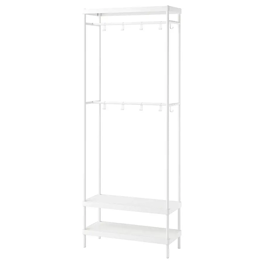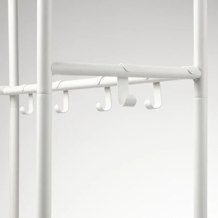 ИКЕА IKEA Вешалка MACKAPÄR с отделением для обуви имеет в общей сложности 10 крючков, 2 из которых можно разместить по бокам. Нижний ряд крючков легко доступен для детей, чтобы они могли повесить свою одежду. Он также подходит как для школьных сумок, так и для сумок. Открытое отделение обеспечивает хорошую вентиляцию как для одежды, так и для обуви, независимо от того, мокрая она или сухая. Вы можете разместить штангу для одежды в передней или задней части шкафа, в зависимости от того, хотите ли вы использовать вешалки или крючки. больше места для хранения, комбинируйте вешалку с гардеробом VIHALS той же высоты или чуть более высоким шкафом PAX. Оригинальная икея/ikea