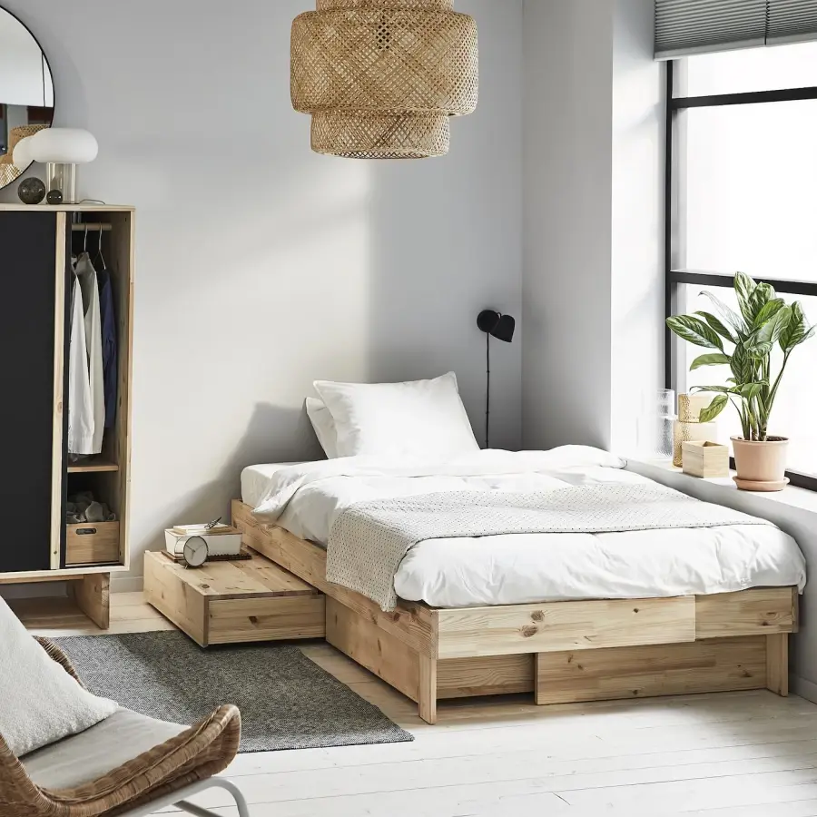 ИКЕА IKEA Серия ГЛАМБЕРГЕТ – практичная, многофункциональная мебель, занимающая мало места. Раздвижная кровать подходит для матрасов разных размеров и оснащена двумя ящиками и столешницей. Оригинальная икея/ikea