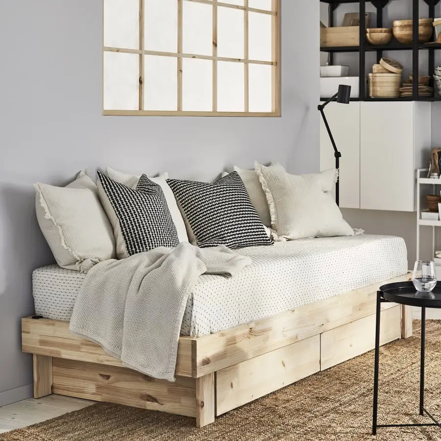 ИКЕА IKEA Серия ГЛАМБЕРГЕТ – практичная, многофункциональная мебель, занимающая мало места. Раздвижная кровать оснащена двумя матрасами и может использоваться как диван. Ночью его легко превратить в двуспальную кровать. Оригинальная икея/ikea