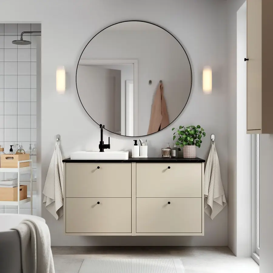 ИКЕА IKEA Если вы делите ванную комнату с другими людьми, это решение даст вам собственный ящик, а может быть, даже два. Шкаф под умывальник совмещен с большой столешницей, на которой поместятся все вещи, которые вам хотелось бы иметь под рукой, собираясь утром. Оригинальная икея/ikea