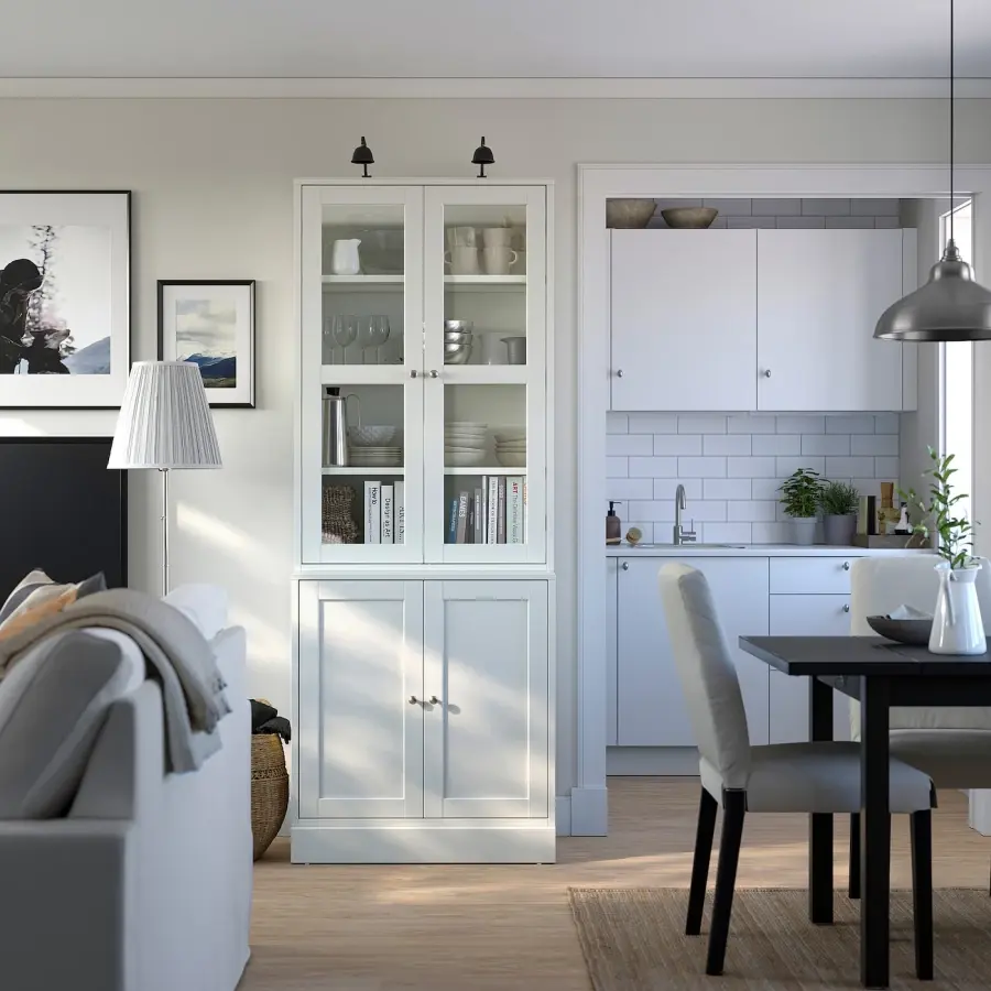 ИКЕА IKEA Тщательно продуманные детали из массива сосны и матовая поверхность придают дому деревенский шарм. Выставьте любимые вещи подальше от пыли за стеклянными дверцами – а остальные спрячьте в закрытые шкафы. Оригинальная икея/ikea