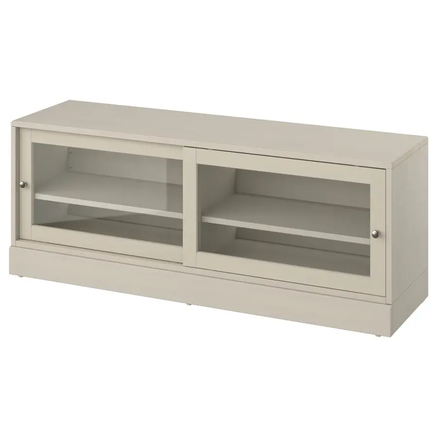 ИКЕА IKEA Тщательно продуманные детали из массива сосны и матовая поверхность придают дому деревенский шарм. Тумба для телевизора со стеклянными раздвижными дверцами и встроенным отсеком для хранения кабелей, позволяющим спрятать спутанные кабели. Оригинальная икея/ikea