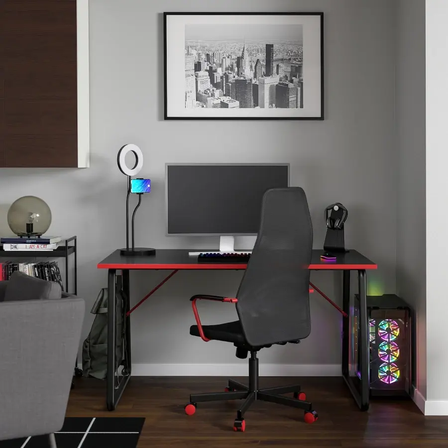 ИКЕА IKEA Прочная поверхность стола, приятная для глаз, так как отражение света низкое. Рабочий стол легко поддерживать в чистоте и порядке, используя кабельный канал под столешницей. Большая столешница вмещает два 24-дюймовых экрана. Наушники всегда могут быть под рукой благодаря входящему в комплект крючку. Гарантия 3 года. Прочтите об условиях в гарантийном буклете. Вы сидите удобно, так как кресло регулируется по высоте. Безопасные ролики оснащены тормозным механизмом, чувствительным к давлению, который удерживает кресло на месте, когда вы встаете, и автоматически освобождается, когда вы садитесь. Оригинальная икея/ikea