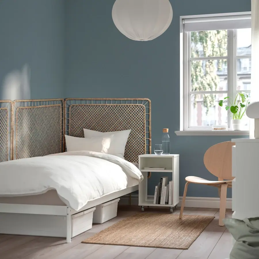 ИКЕА IKEA Квалифицированные мастера соткали изделие вручную, поэтому каждое из них уникально. Ротанг — это натуральный материал, который прекрасно стареет и со временем приобретает свой уникальный характер. Этот материал приносит в ваш дом частичку природы и дарит ощущение спокойствия и тепла. не нужно крепить его к стене. Ножки изголовья предназначены для стен как с плинтусом, так и без него. Оригинальная икея/ikea