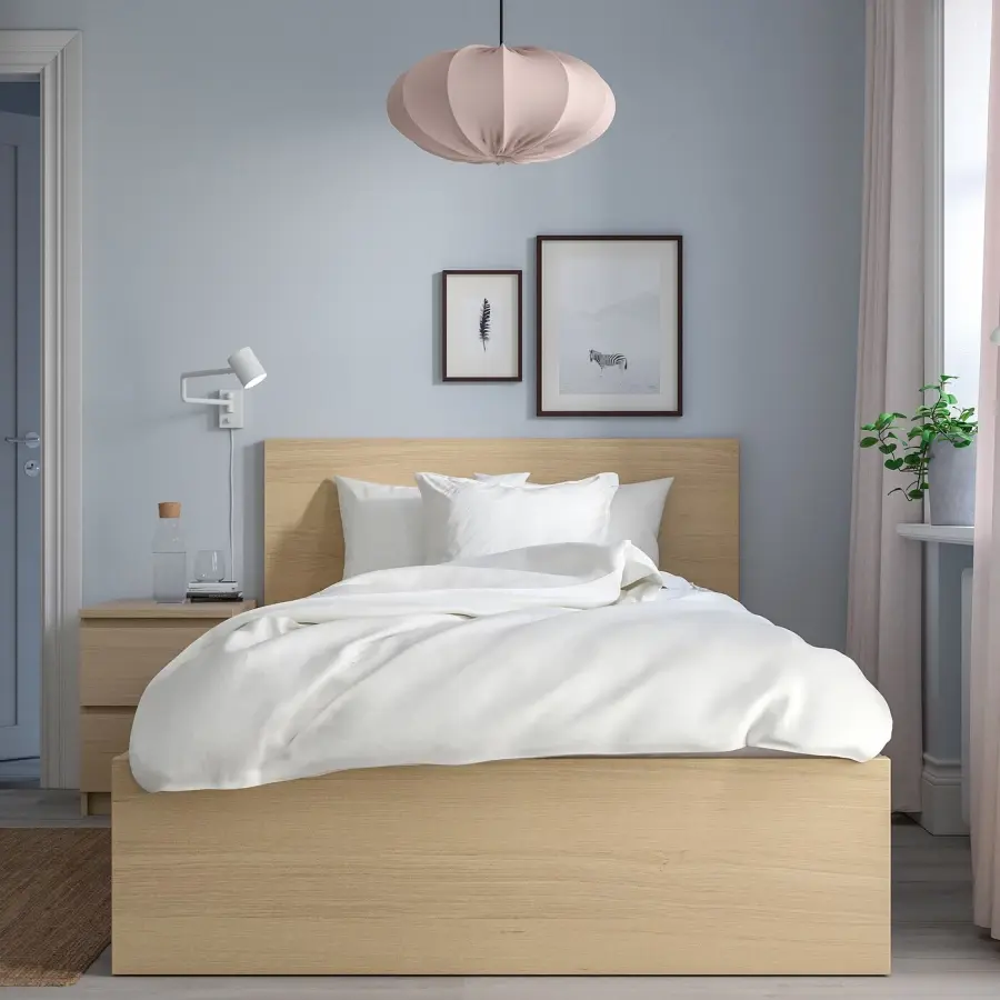 ИКЕА IKEA Простой дизайн, облицован шпоном массива дерева. Поставьте кровать отдельно или изголовьем к стене. Если вам нужно место для запасных постельных принадлежностей, добавьте контейнеры для хранения МАЛЬМ на колесах. Оригинальная икея/ikea