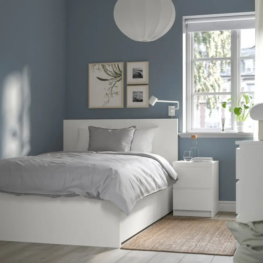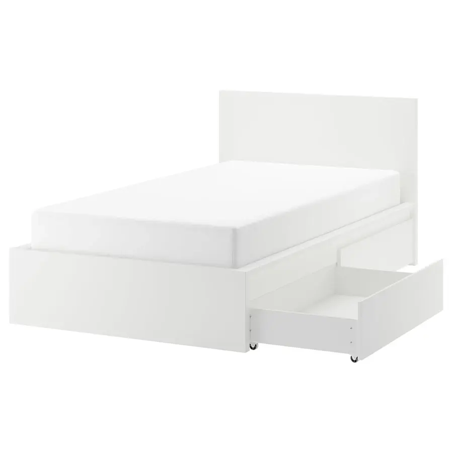 ИКЕА IKEA Просторное место для хранения аккуратно спрятано под кроватью в 2 больших ящиках. Идеально подходит для хранения пуховых одеял, подушек и постельного белья. Ящики для хранения легко выкатываются и складываются благодаря колесикам на основании. Ящики для хранения кроватей МАЛЬМ идеально сочетаются с каркасом кровати МАЛЬМ. Они аккуратно вписываются в пространство под кроватью и будут вровень с боковинами. Благодаря высокому изголовью вы можете удобно сидеть в кровати – просто подложите несколько подушек за спину, и у вас будет удобное место для чтения или просмотра телевизора. Этот универсальный каркас кровати будет отлично смотреться с выбранным вами текстилем и мебелью для спальни. Регулируемые боковины кровати позволяют использовать матрасы разной толщины. как зоны комфорта, которые приспосабливаются к вашему телу. Оригинальная икея/ikea