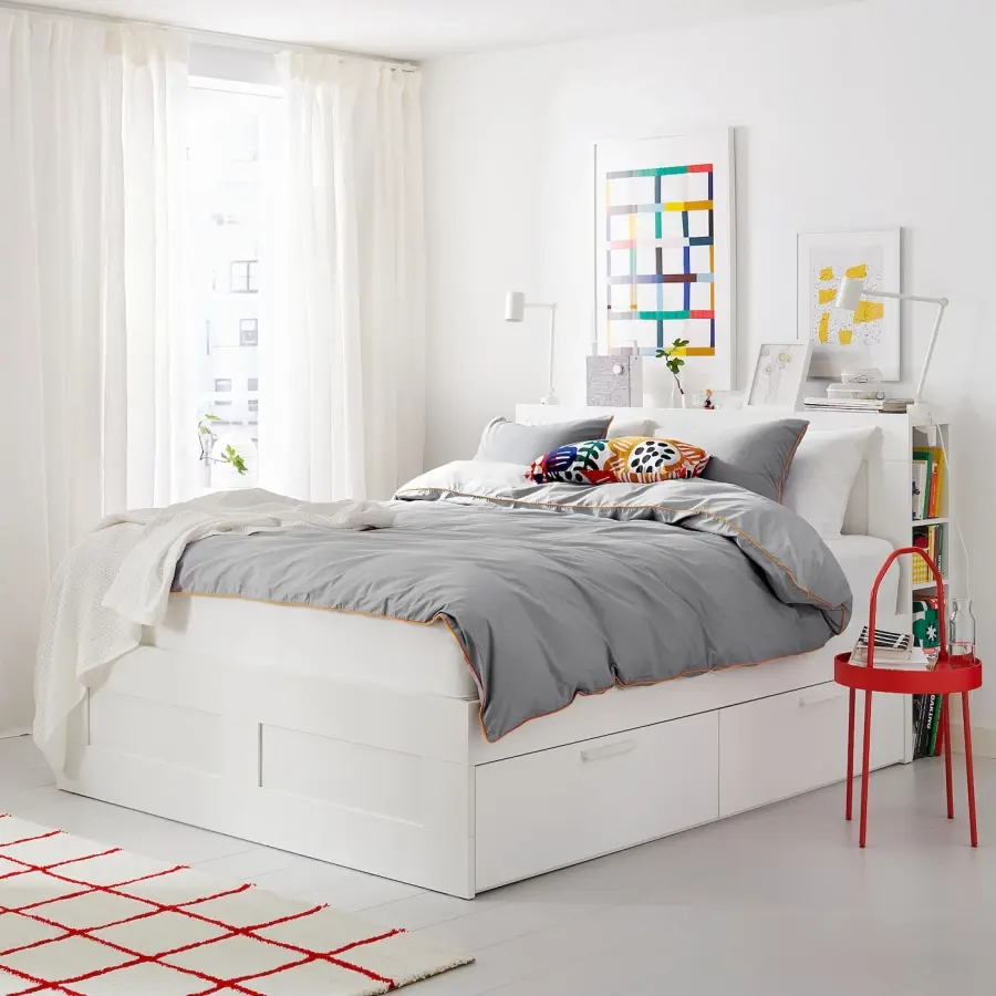 ИКЕА IKEA Каркас кровати со спрятанными в разных местах контейнерами – идеальное решение, если вы живете в небольшом помещении. В серии БРИМНЭС есть множество умных решений, которые помогут вам сэкономить место. Оригинальная икея/ikea