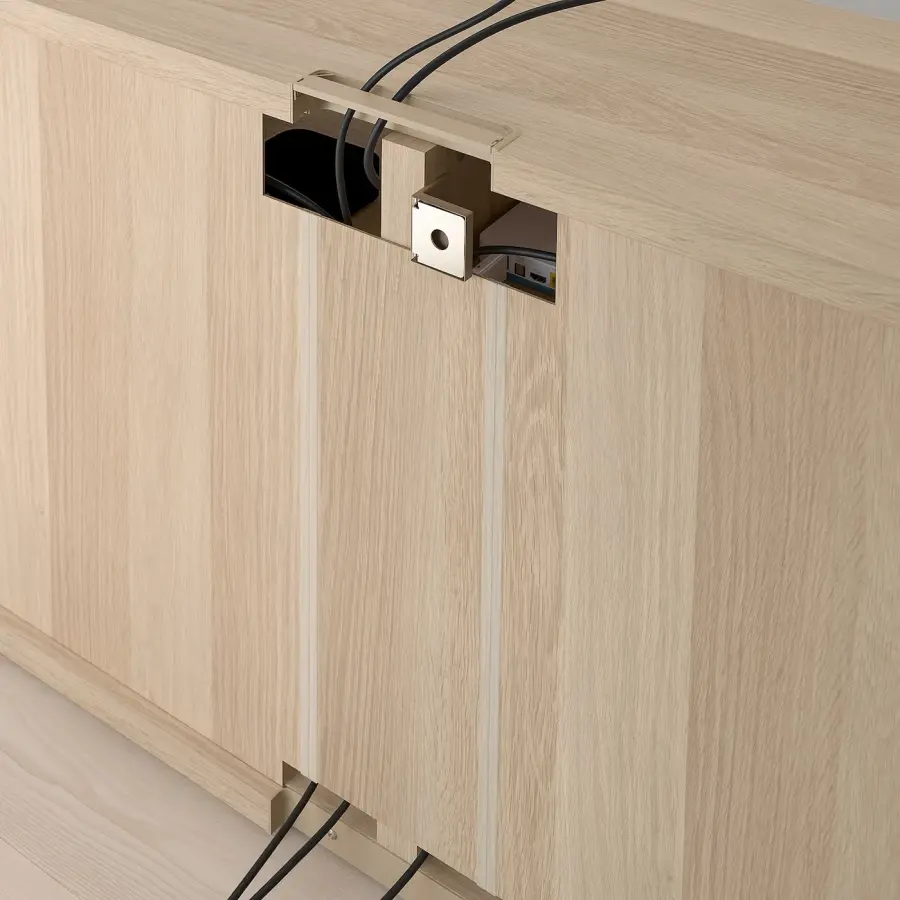 ИКЕА IKEA Кабели от телевизора и других устройств легко держать вне поля зрения, но под рукой, так как в задней части тумбы для телевизора есть несколько выходов для кабелей. Если вы хотите навести порядок внутри, вы можете дополнить его внутренней фурнитурой БЕСТО. Устойчивость даже на неровных полах благодаря регулируемым ножкам. Оригинальная икея/ikea