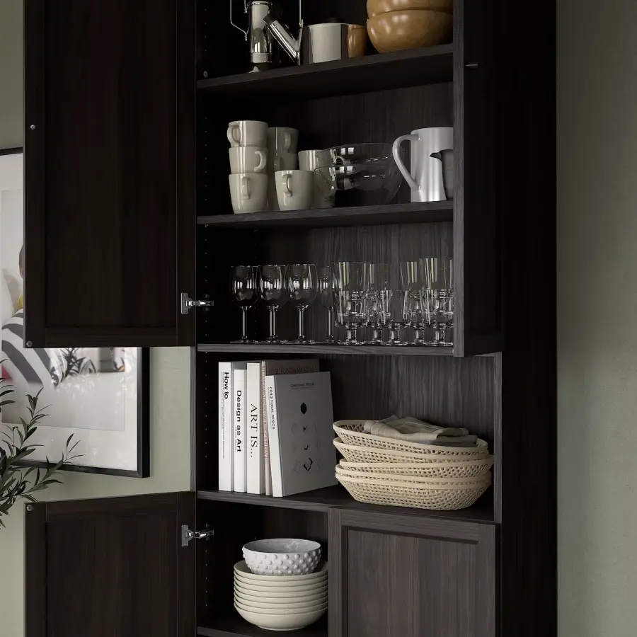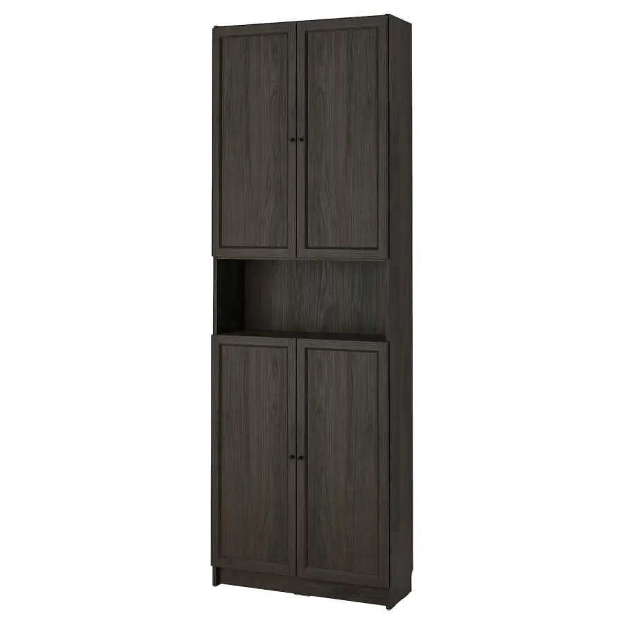 Книжный шкаф с дверцей - IKEA BILLY/OXBERG/БИЛЛИ/ОКСБЕРГ ИКЕА, 237х30х80 см, темно-коричневый