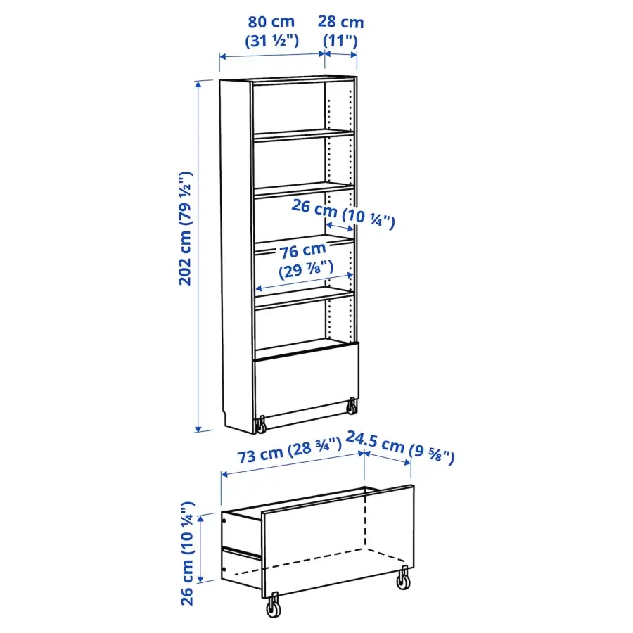 ИКЕА IKEA БИЛЛИ — это универсальный книжный шкаф, который так же хорошо работает как место для хранения и подходит для самых разных целей дома. Белый ящик БИЛЛИ на колесиках идеально сочетается с книжным шкафом БИЛЛИ и превращает нижнюю часть книжного шкафа в просторное и закрытое пространство для хранения. далеко. Легко выдвигать и задвигать снова, так как колесики плавно катятся по полу. Регулируемые полки книжного шкафа позволяют вам выбирать объем и функцию ящика. Поместите последнюю полку на одну линию с передней панелью ящика для полностью закрытого хранения или опустите, чтобы обеспечить хороший захват ящика. Оригинальная икея/ikea