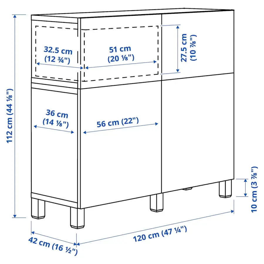 Комбинация для хранения - IKEA BESTÅ/BESTA, 120х42х112 см, под беленый дуб, БЕСТО ИКЕА