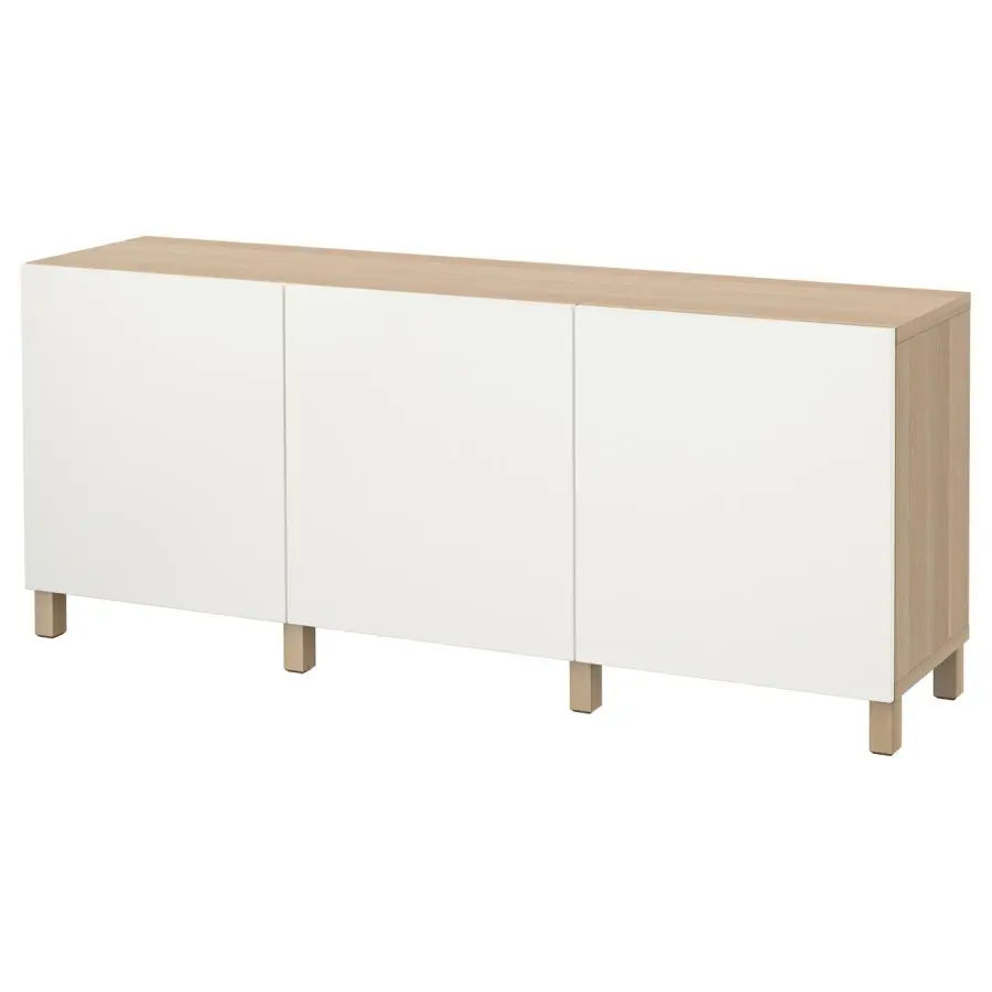 ИКЕА IKEA Вы можете выбрать функцию плавного закрывания или открывания нажатием. Нажимная кнопка позволяет открывать дверцы легким нажатием, а плавно закрывающиеся петли обеспечивают бесшумное и мягкое закрывание. Ножки приподнимают вашу комбинацию БЕСТО над полом, придавая ей легкий воздушный вид и облегчая уборку пола под ней. Оригинальная икея/ikea
