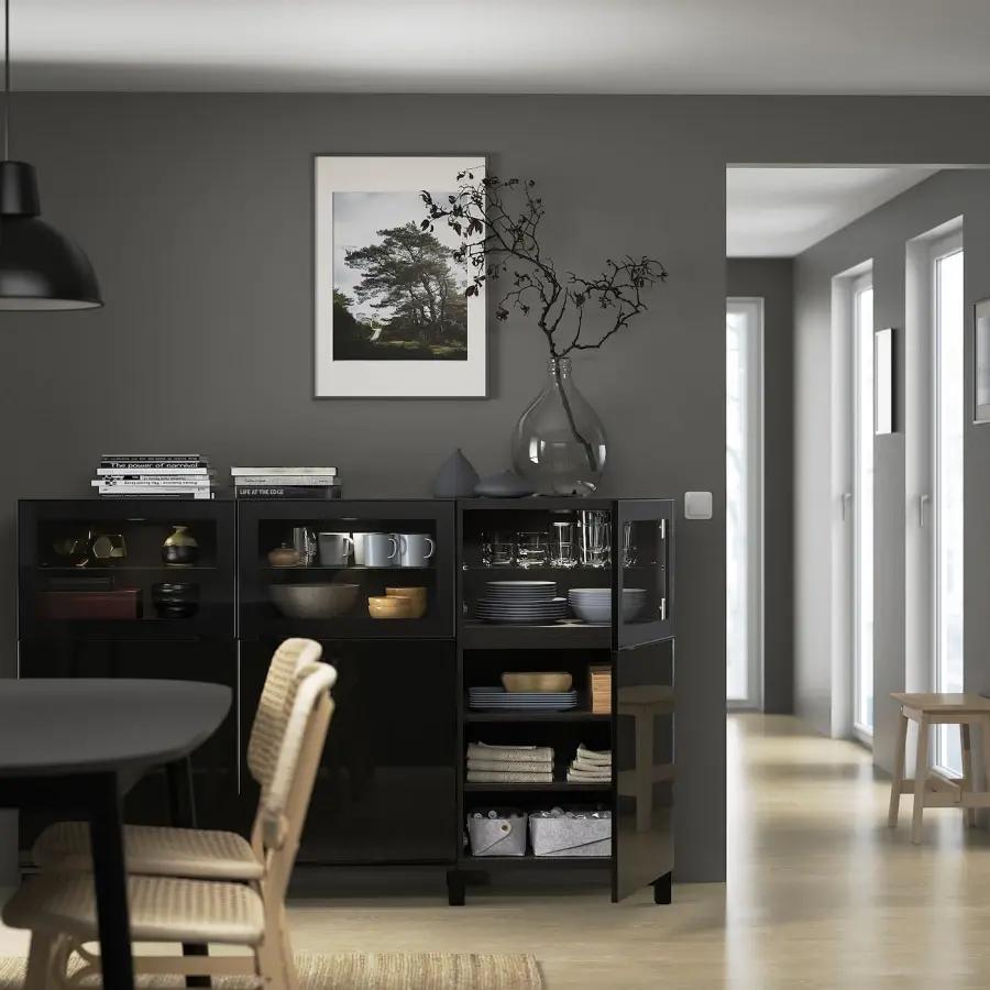 ИКЕА IKEA Стеклянные дверцы защищают ваши лучшие вещи от пыли, но при этом остаются видимыми. Дверцы открываются легким нажатием и закрываются бесшумно и мягко, так как петли имеют функции как открывания нажатием, так и плавного закрывания. Полки регулируются, поэтому вы можете настроить хранение по своему усмотрению. Оригинальная икея/ikea