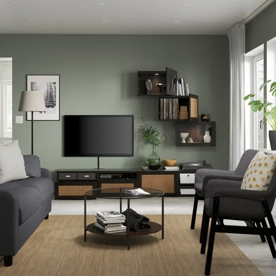 Комбинация для хранения ТВ - IKEA BESTÅ/BESTA, 190x42x240см, коричневый/черный, БЕСТО ИКЕА