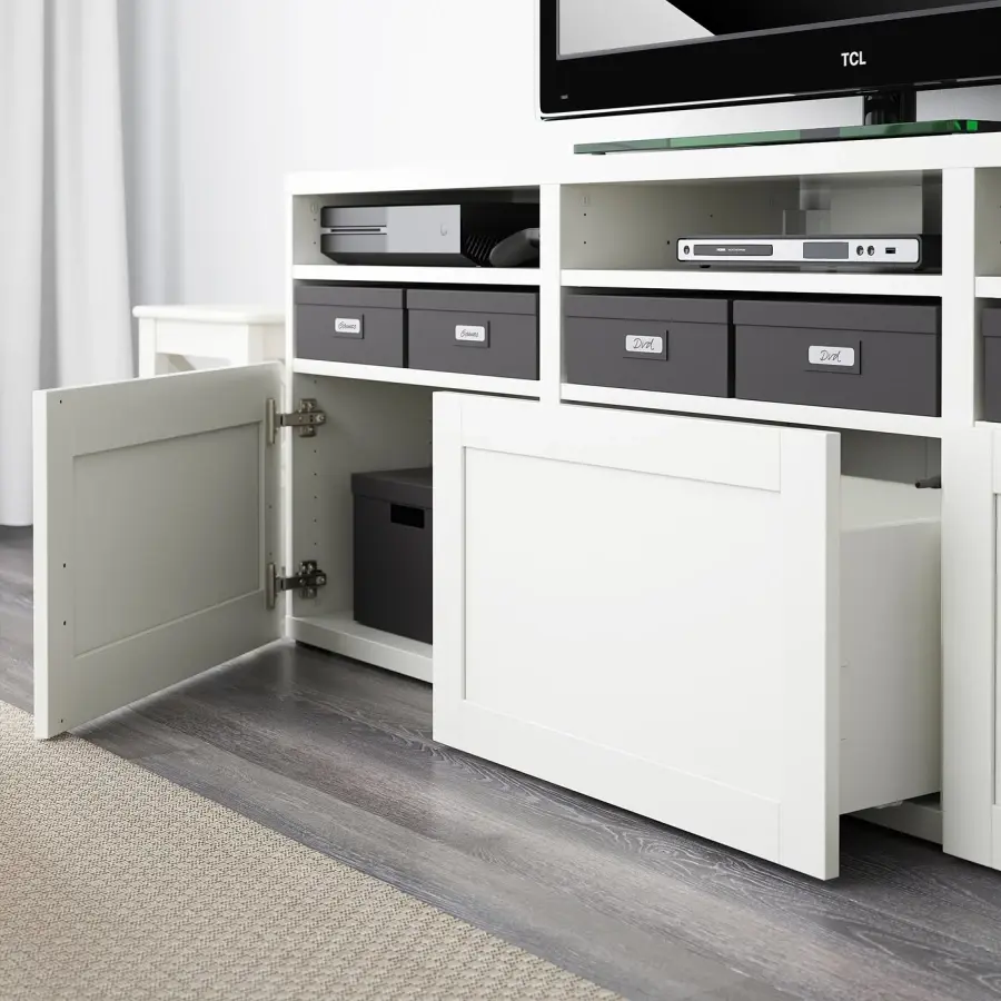 ИКЕА IKEA Вы можете удобно спрятать кабели от телевизора и других устройств и при этом иметь их под рукой, ведь в задней части подставки под телевизор имеется несколько отверстий для кабелей. Оригинальная икея/ikea
