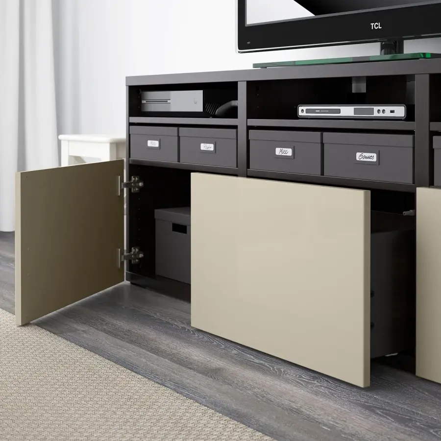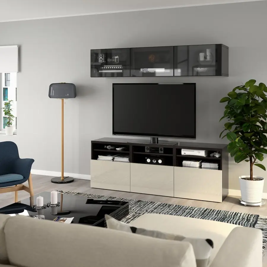 Комбинация для хранения ТВ - IKEA BESTÅ/BESTA, 192x42x180см, черный/светло-коричневый, БЕСТО ИКЕА