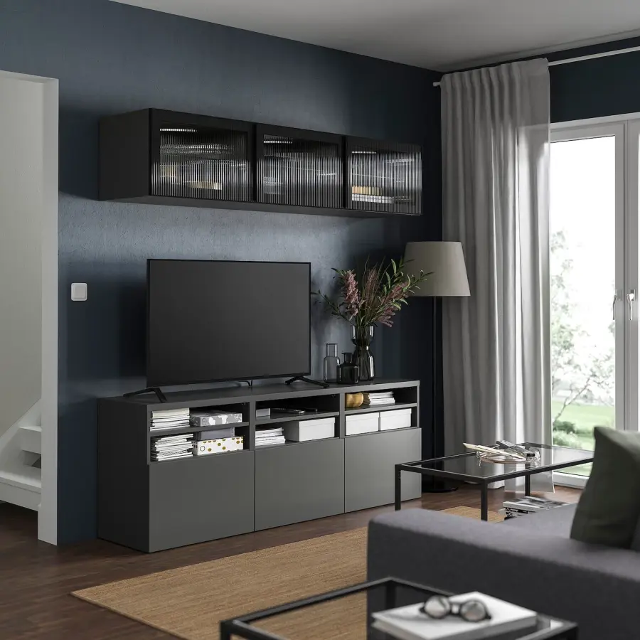 Комбинация для хранения ТВ - IKEA BESTÅ/BESTA, 192x42x180см, темно-серый, БЕСТО ИКЕА