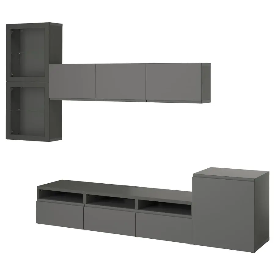 Комбинация для хранения ТВ - IKEA BESTÅ/BESTA, 211x42x300см, темно-серый, БЕСТО ИКЕА