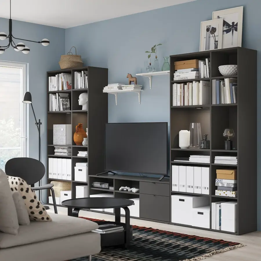 ИКЕА IKEA Серия хранения VIHALS имеет единый внешний вид, который объединяет комнаты по всему дому. Эта комбинация позволяет скрыть беспорядок из пультов дистанционного управления и кабелей, чтобы вы могли расслабиться и сосредоточиться на развлечениях. Оригинальная икея/ikea