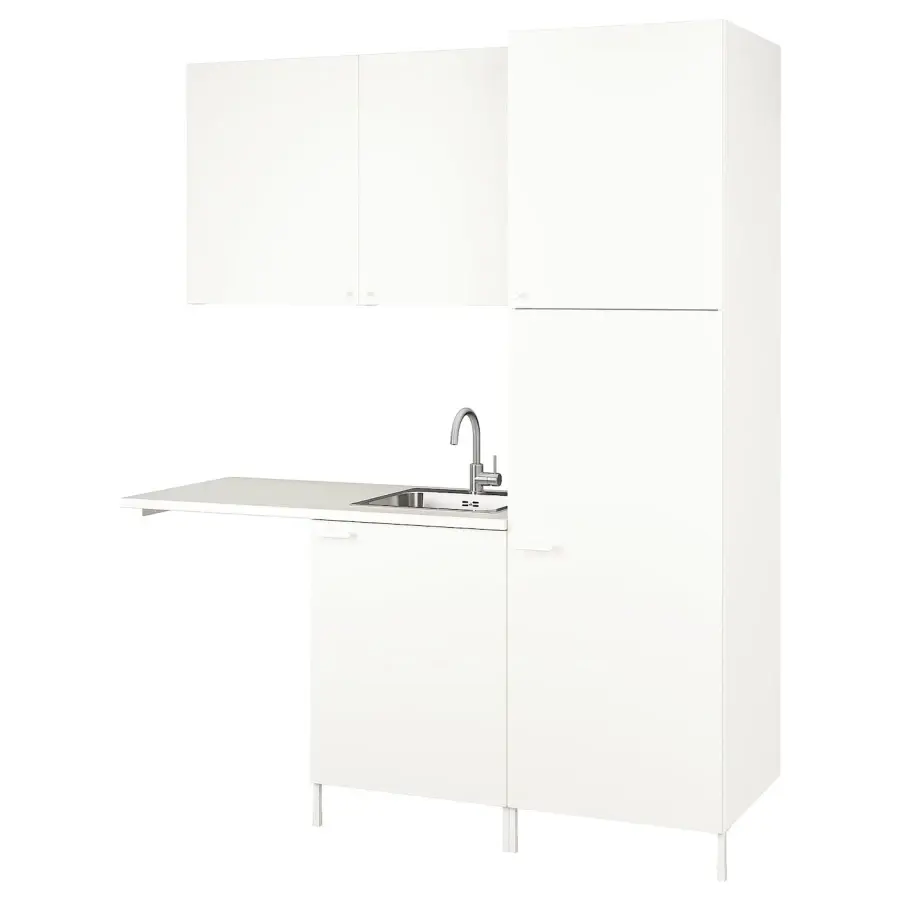 ИКЕА IKEA Вы можете легко добавить аксессуары ENHET, чтобы расширить возможности использования вашей комбинации для хранения. И самое главное – вам не нужно сверлить. Продаются отдельно. Уникальные клиновидные дюбели упрощают сборку, а фурнитура практически незаметна. Столешницы из ламината очень прочны и просты в уходе. При небольшом уходе они остаются как новые в течение многих лет. Глубокое и высокое хранилище с 2 полками предлагает много места для всех ваших принадлежностей для стирки и уборки. Навесной шкаф с дверцей эффективно использует пространство над столешницей. Идеально подходит для загромождения моющих средств и чистящих средств. Создайте собственный образ! Поменяйте цвет дверей, чтобы создать современное, классическое или минималистское решение, которое идеально подходит вашему стилю. Раковина из нержавеющей стали прочная, долговечная, гигиеничная и простая в уходе. Комплект освещения SKYDRAG разработан для серии ENHET и идеально подходит как для освещения рабочей поверхности, так и для создания атмосферы. С драйвером TRÅDFRI и беспроводным диммером вы можете легко включать, выключать и приглушать освещение. Тумба под раковину — это удобное место для моющих средств и смягчителей, а в задней части тумбы есть место для трубопроводов. Открытое пространство под столешницей можно использовать для размещения стиральной машины или мешка для белья. Легко наслаждаться и всегда стильно. Ручка и ручка GUBBARP из белого пластика имеют простой современный вид, который легко сочетается с различными дверцами и фасадами ящиков. Ножки ENHET высотой 12,5 см обеспечивают удобную высоту нижних шкафов и повышают устойчивость. Оригинальная икея/ikea