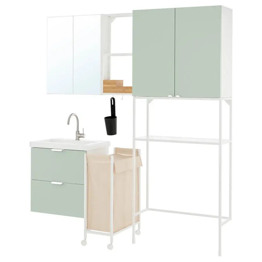 Комбинация для ванной - IKEA ENHET, 180x43x204 см, белый/серо-зеленый, ЭНХЕТ ИКЕА