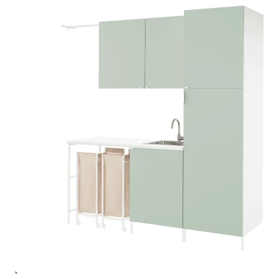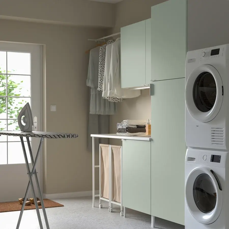 ИКЕА IKEA Красивое хранилище и многое другое. Предварительно рассортируйте грязное белье по мешкам для стирки и используйте раковину, когда вам нужно постирать вручную. Столешница — идеальное место, чтобы сложить и разложить чистую одежду. Оригинальная икея/ikea