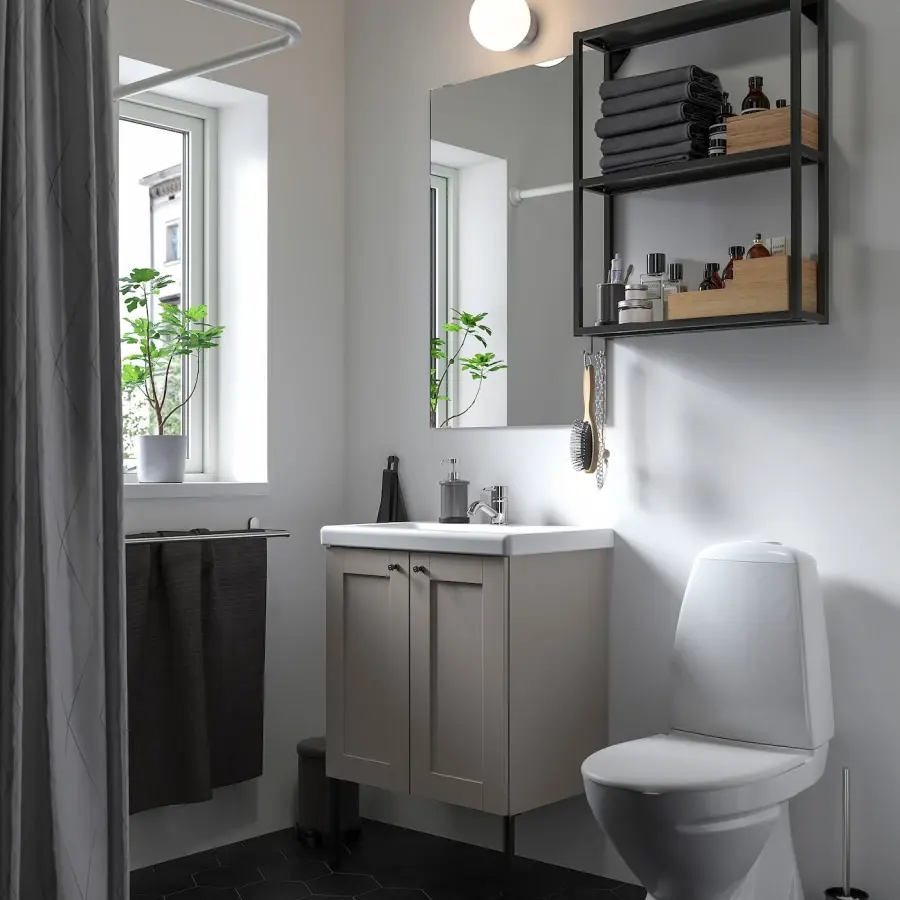 Комбинация для ванной - IKEA ENHET, 64х43х65 см, антрацит/серый, ЭНХЕТ ИКЕА