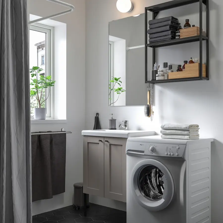 ИКЕА IKEA Идеально адаптированное решение, сочетающее открытое и закрытое хранилище. Зеркало обеспечивает хороший обзор – себя и всех своих вещей. Корпус навесного шкафа и крючки без отверстий обеспечивают доступ к полотенцам и аксессуарам. Оригинальная икея/ikea