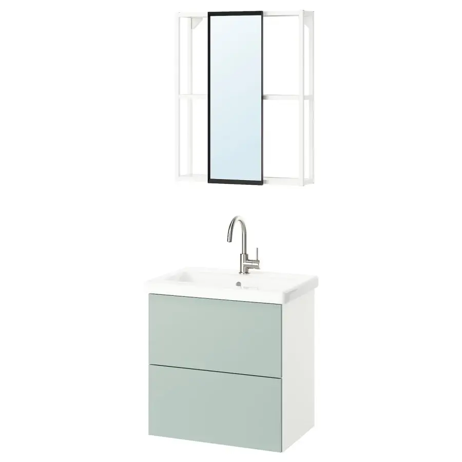 Комбинация для ванной - IKEA ENHET, 64х43х65 см, белый/серо-зеленый, ЭНХЕТ ИКЕА