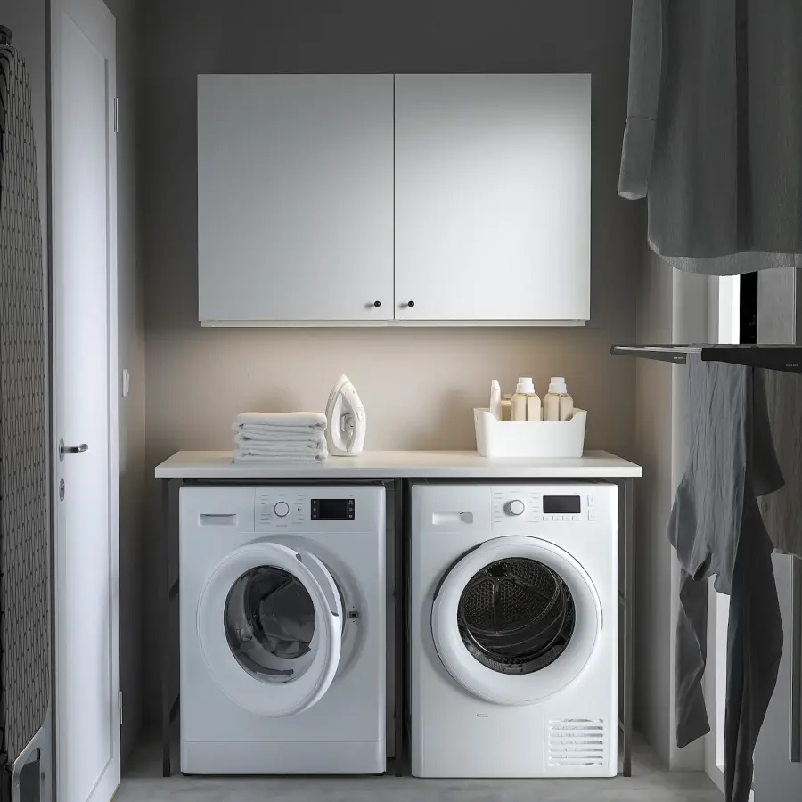 ИКЕА IKEA Аккуратный вид получится с закрытым навесным шкафом, совмещенным с нишей для таких вещей, как стиральная машина, сушилка или мешки для белья. Столешница обеспечивает функциональное пространство для сортировки и складывания одежды. Оригинальная икея/ikea