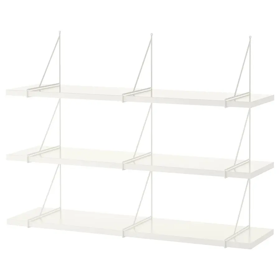 Настенная полка имеет один скошенный и один гладкий край на длинной стороне, поэтому вы можете выбрать сторону, обращенную к комнате, в зависимости от того, какой из двух разных стилей вам нравится больше всего. Кронштейны разработаны таким образом, чтобы хорошо сочетаться друг с другом при соединении нескольких в более крупную комбинацию. Вы можете установить кронштейны над или под полкой, создавая тем самым два разных образа. Чтобы скрепить два кронштейна вместе, вам понадобится всего один винт.