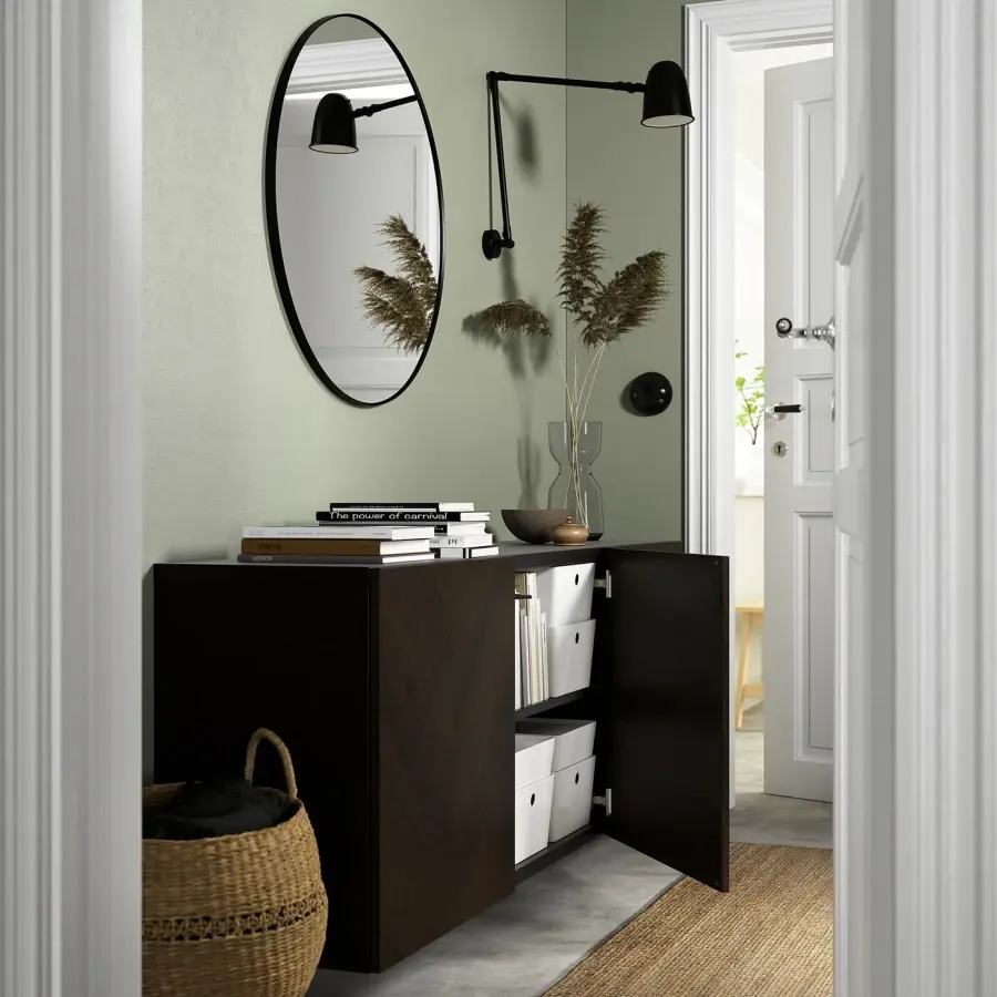 ИКЕА IKEA Эту комбинацию шкафов можно легко закрепить на стене с помощью прилагаемых настенных направляющих. Это решение создает впечатление легкости и освобождает место на полу, а также предлагает практичное место для хранения вещей. Оригинальная икея/ikea