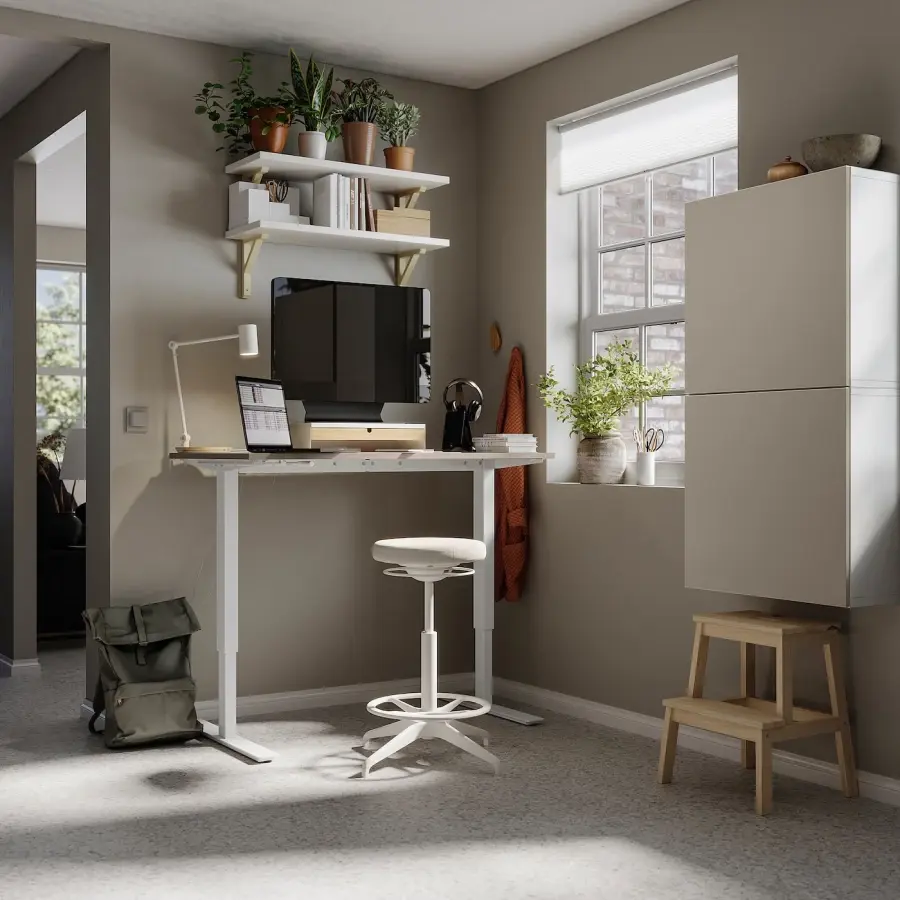 ИКЕА IKEA Хорошего дня на работе – дома. В этом эргономичном наборе есть все необходимое. Письменный стол ТРОТТЕН с приятной для глаз поверхностью, стул для сидения/стояния ЛИДКУЛЛЕН и свободное место для хранения вещей. Оригинальная икея/ikea