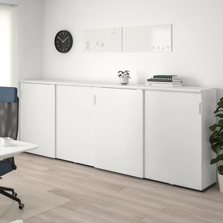 ИКЕА IKEA Папки, папки, документы – в офисе легко захламится, если все будет на виду. Благодаря пространству для хранения за раздвижными дверями вы можете легко получить доступ ко всему, наслаждаясь при этом более тихим рабочим пространством. Оригинальная икея/ikea