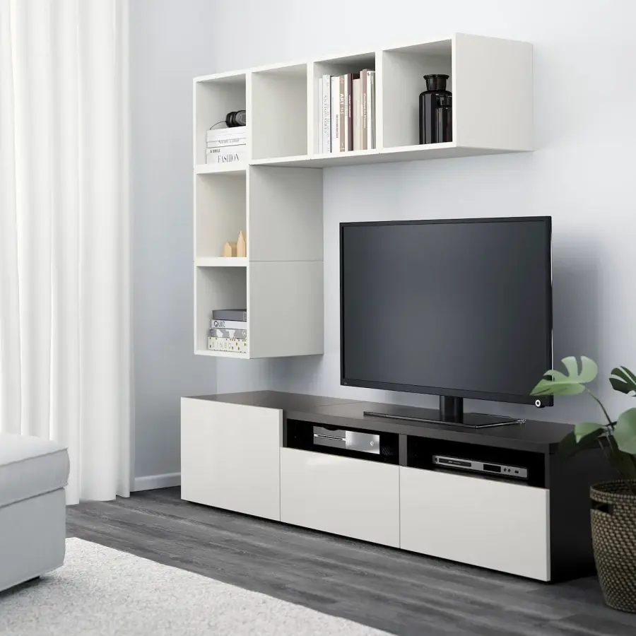Комбинация тумб под ТВ - IKEA BESTÅ/BESTA EKET, 170x42x180см, белый/черный, БЕСТО ЭКЕТ ИКЕА